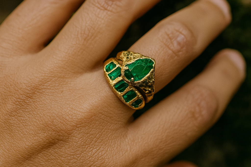 We work exclusively with natural and untreated gemstones - including emeralds, tourmalines, sapphires, and diamonds - each carefully selected for its color, energy, and character.