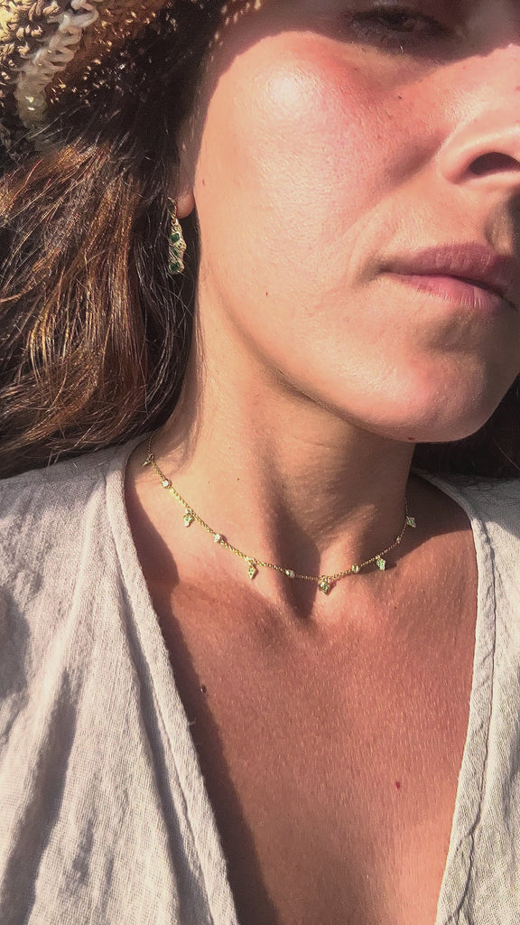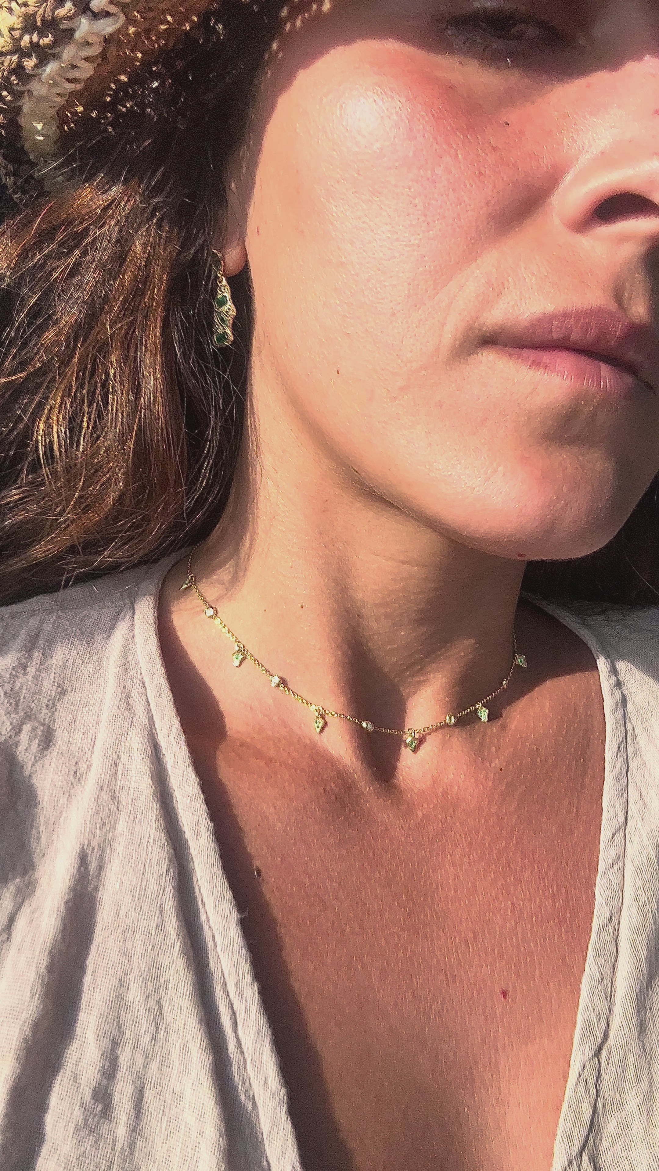 Crafted from 14k recycled gold, the Sivan Necklace embodies timeless elegance with a contemporary soul. Adorned with natural emeralds and diamonds, this piece reflects nature’s harmony, blending brilliance with depth.